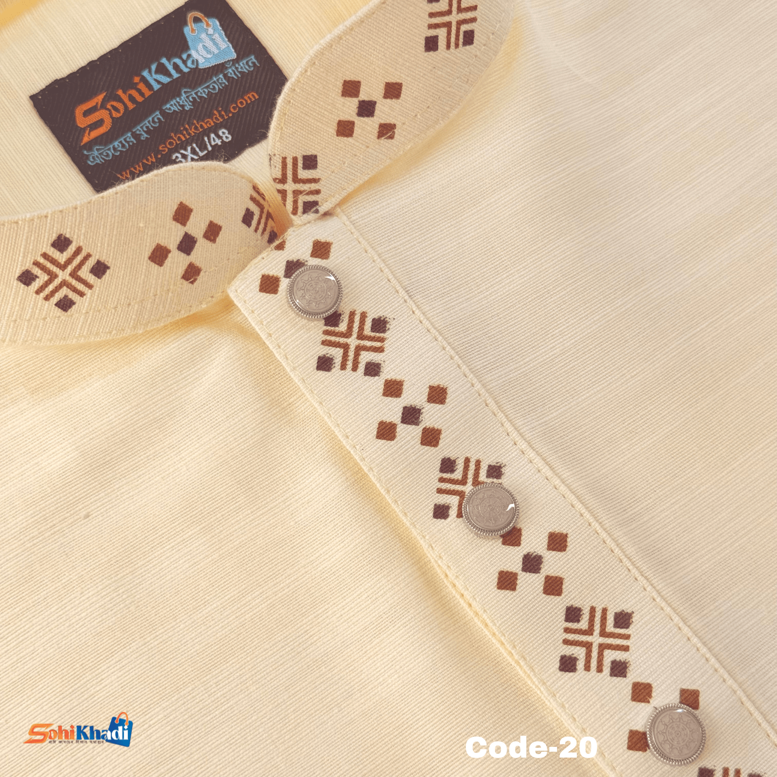 অরজিনাল ক্রিম কালার খাদি পাঞ্জাবী(কোড ২০)