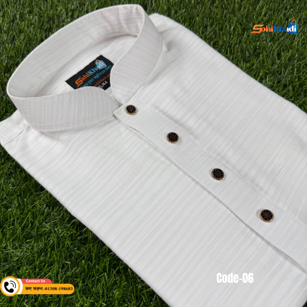 ১০০% কটন হাতে বোনা খাদি সাদা কালারের এই পাঞ্জাবিটি নিজস্ব কারখানায় তৈরি । শতভাগ কালার এবং কোয়ালিটি গ্যারান্টি পাবেন ইনশাল্লাহ।