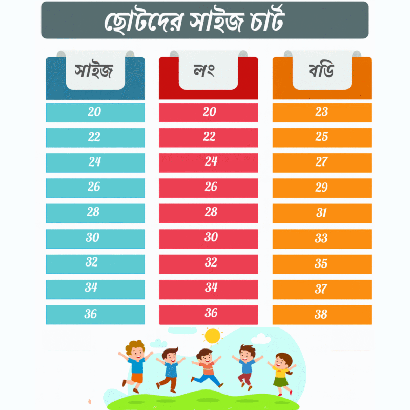 āϏāĻžāĻāĻ *S/ā§Šā§Ž āϏāĻžāĻāĻ= āϞāĻŽā§āĻŦāĻžāĻ ā§Šā§Ž , āĻŦā§āĻāĻ ā§Ēā§ĻM/ā§Ēā§Ļ āϏāĻžāĻāĻ= āϞāĻŽā§āĻŦāĻžāĻ ā§Ēā§Ļ, āĻŦā§āĻāĻ ā§Ē⧍L/ā§Ē⧍ āϏāĻžāĻāĻ= āϞāĻŽā§āĻŦāĻžāĻ ā§Ē⧍, āĻŦā§āĻāĻ ā§Ēā§ĒXL/ā§Ēā§Ē āϏāĻžāĻāĻ= āϞāĻŽā§āĻŦāĻžāĻ ā§Ēā§Ē, āĻŦā§āĻāĻ ā§Ēā§Ŧ2XL/ā§Ēā§Ŧ āϏāĻžāĻāĻ= āϞāĻŽā§āĻŦāĻžāĻ ā§Ēā§Ŧ , āĻŦā§āĻāĻ ā§Ēā§Ž3XL/ā§Ēā§Ž āϏāĻžāĻāĻ= āϞāĻŽā§āĻŦāĻžāĻ ā§Ēā§Ž , āĻŦā§āĻāĻ ā§Ģ⧍4XL/ā§Ģā§Ļ āϏāĻžāĻāĻ= āϞāĻŽā§āĻŦāĻžāĻ ā§Ēā§Ž , āĻŦā§āĻāĻ ā§Ģā§Ē5XL/ā§Ģ⧍ āϏāĻžāĻāĻ= āϞāĻŽā§āĻŦāĻžāĻ ā§Ē⧝ , āĻŦā§āĻāĻ ā§Ģā§Ŧ6XL/ā§Ģā§Ē āϏāĻžāĻāĻ= āϞāĻŽā§āĻŦāĻžāĻ ā§Ē⧝ , āĻŦā§āĻāĻ ā§Ģā§.ā§Ģ